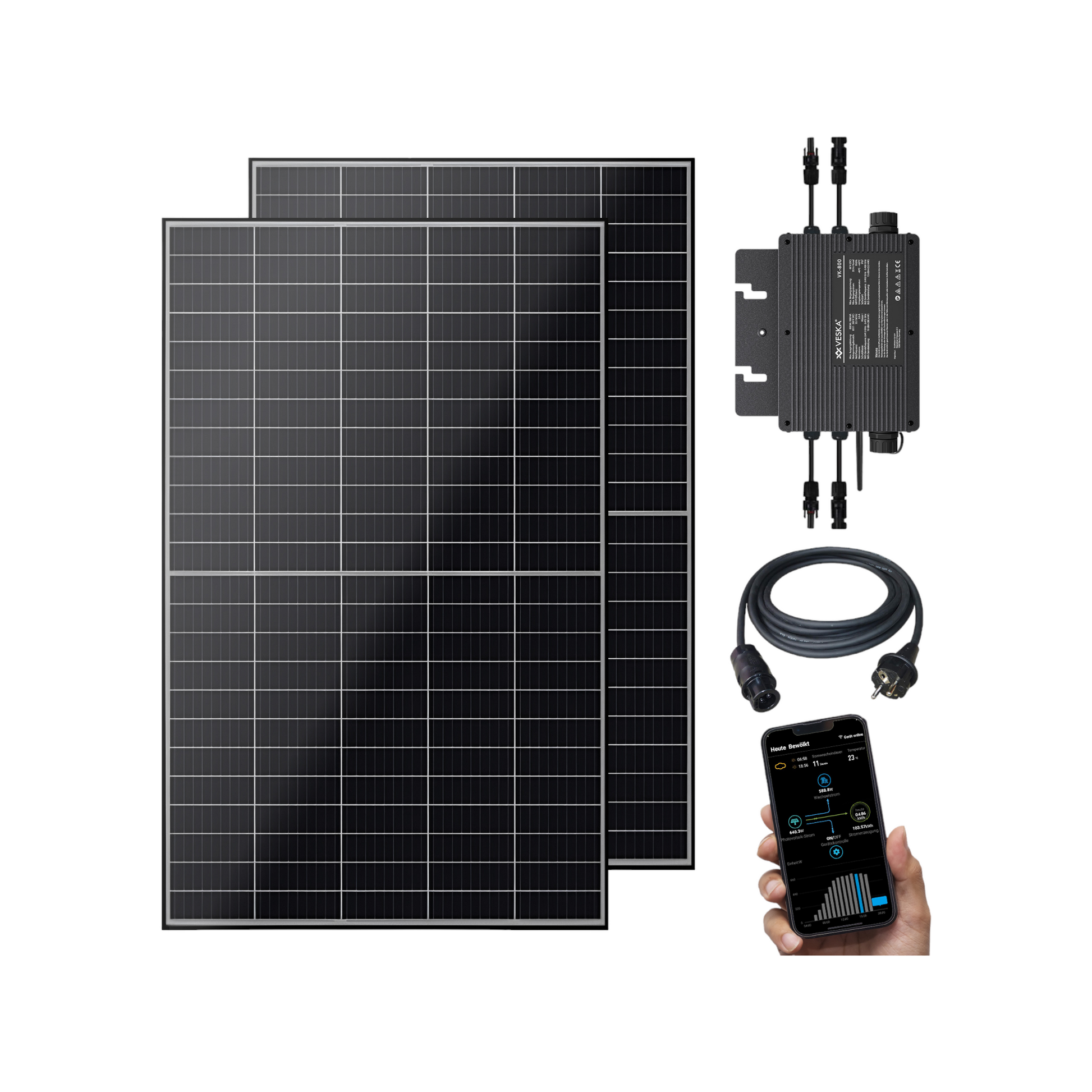 - Zwei Solarmodule mit 1.000 Watt Gesamtleistung