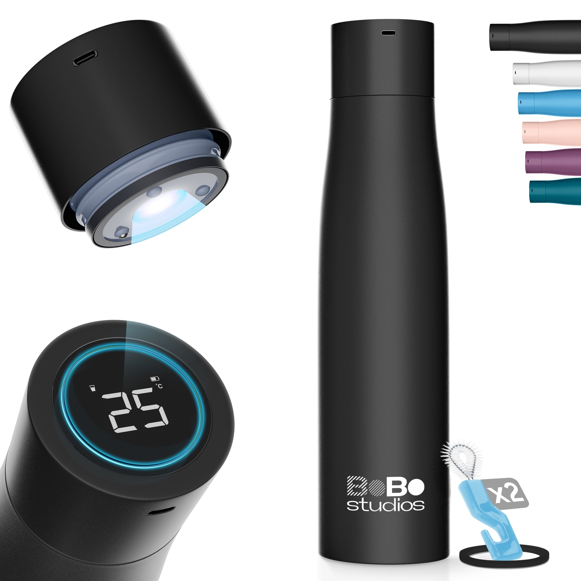 - Innovativ und hygienisch: UV-C-Technologie reinigt Wasser und Flasche ohne toxische Substanzen.