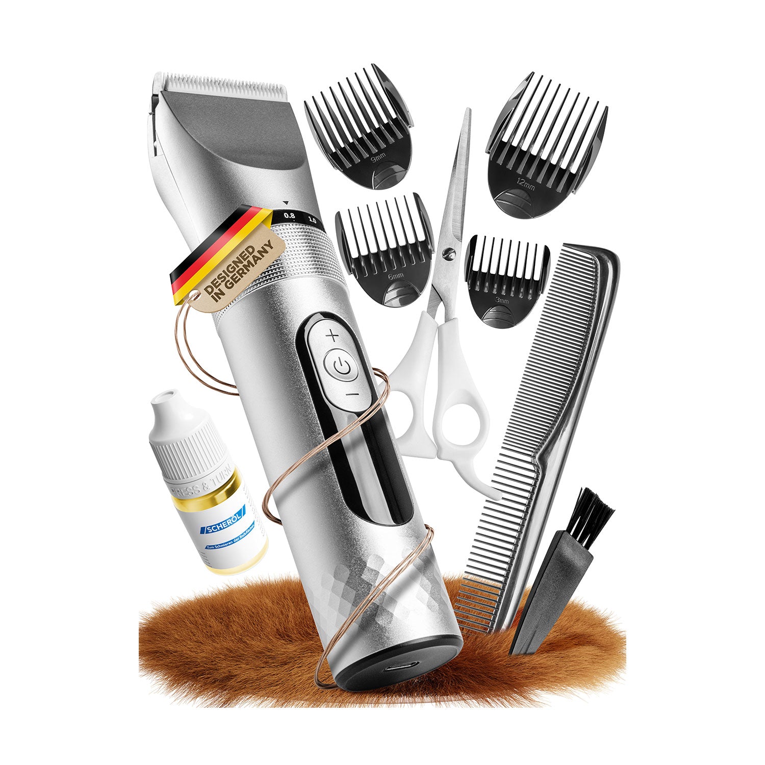 - Komplettes Set mit verschiedenen Scher-Aufsätzen, Kamm, Schere und Scher-Öl
