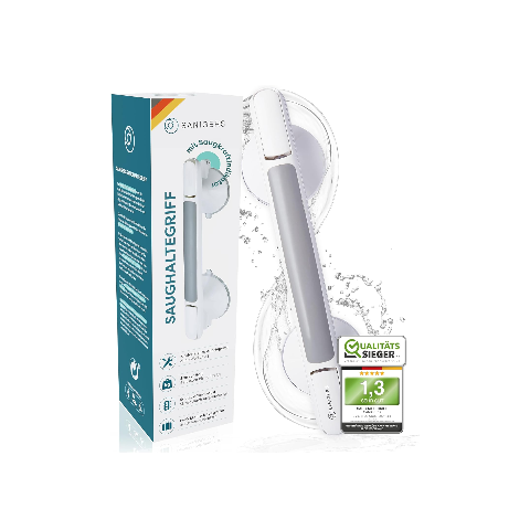 Der SANIGERS Saughaltegriff bietet zusätzliche Sicherheit und Stabilität für Menschen mit eingeschränkter Mobilität, und kann ohne Werkzeug an glatten Oberflächen angebracht werden.