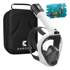 Die Schnorchelmaske der Marke Khroom ist eine Vollmaske zum Schnorcheln, welche es ermöglicht, frei durch Mund und Nase zu atmen.